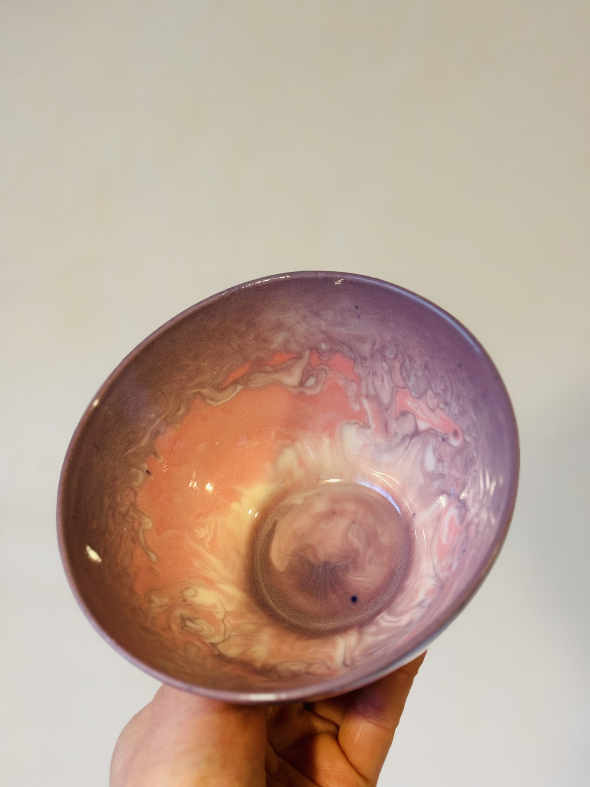 Hand-cast in porcelain, each Lollipop Bowl is a one-of-a-kind piece. The vibrant swirls are created by mixing pigments directly into liquid porcelain, then pouring the colorful blend by hand into a custom plaster mold. This process results in joyful, energetic patterns — no two bowls are ever the same!