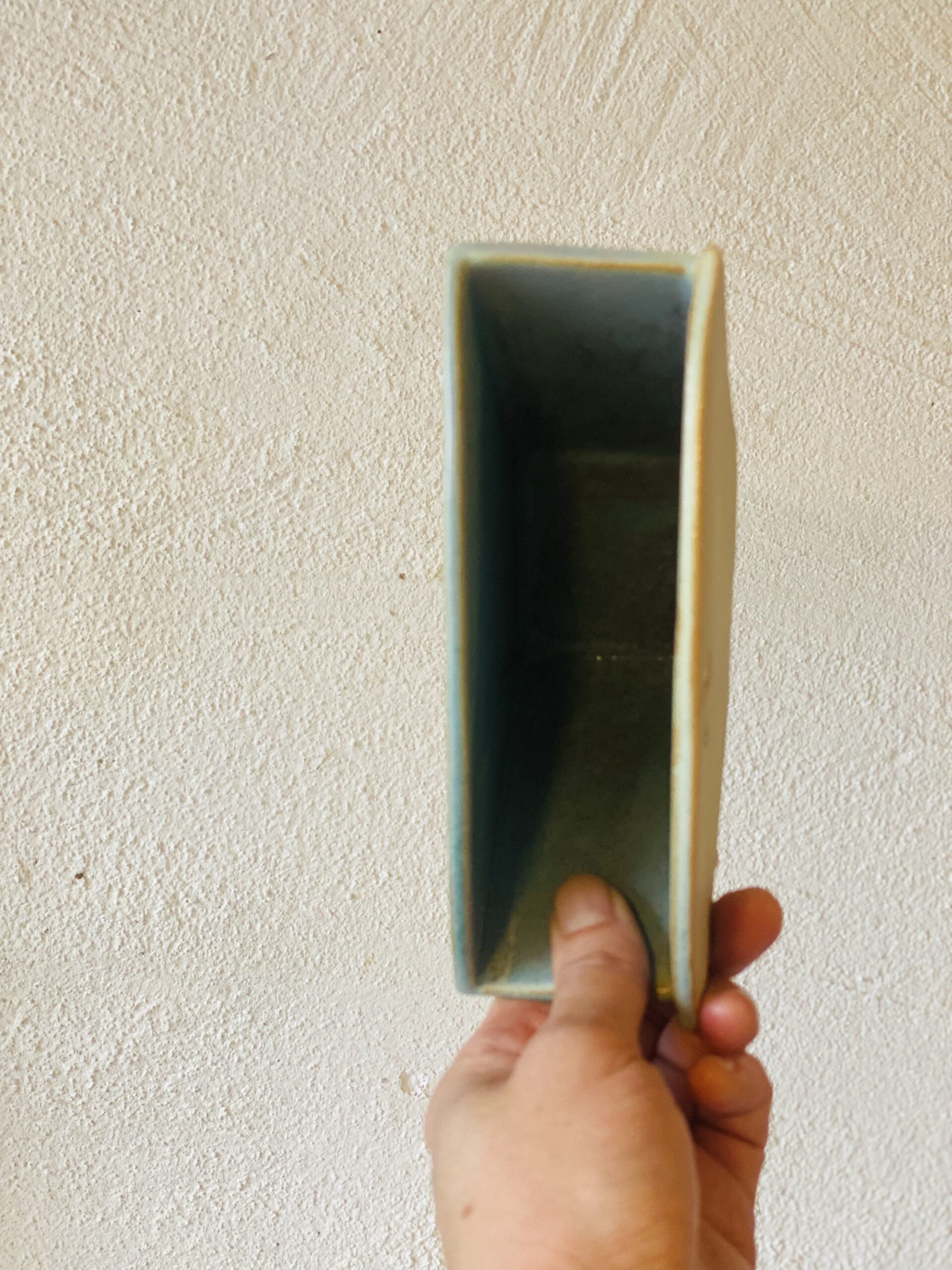 Color: Glazed in a blue-green tone with a muted sea-green color featuring blue and gray undertones reminiscent of aged copper.