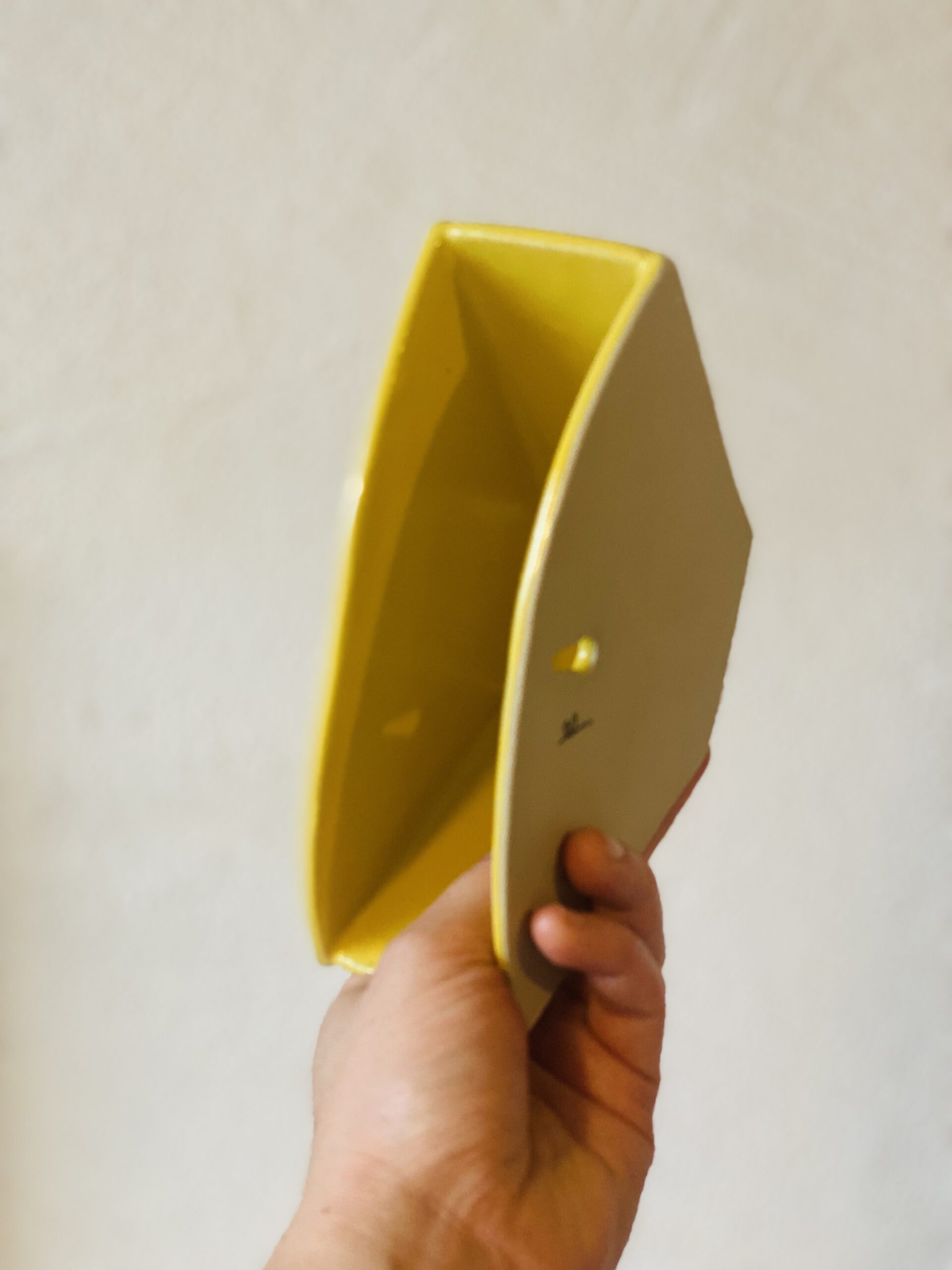 Color: The Coffee Filter Holder is glazed with a smooth mustard yellow glaze.