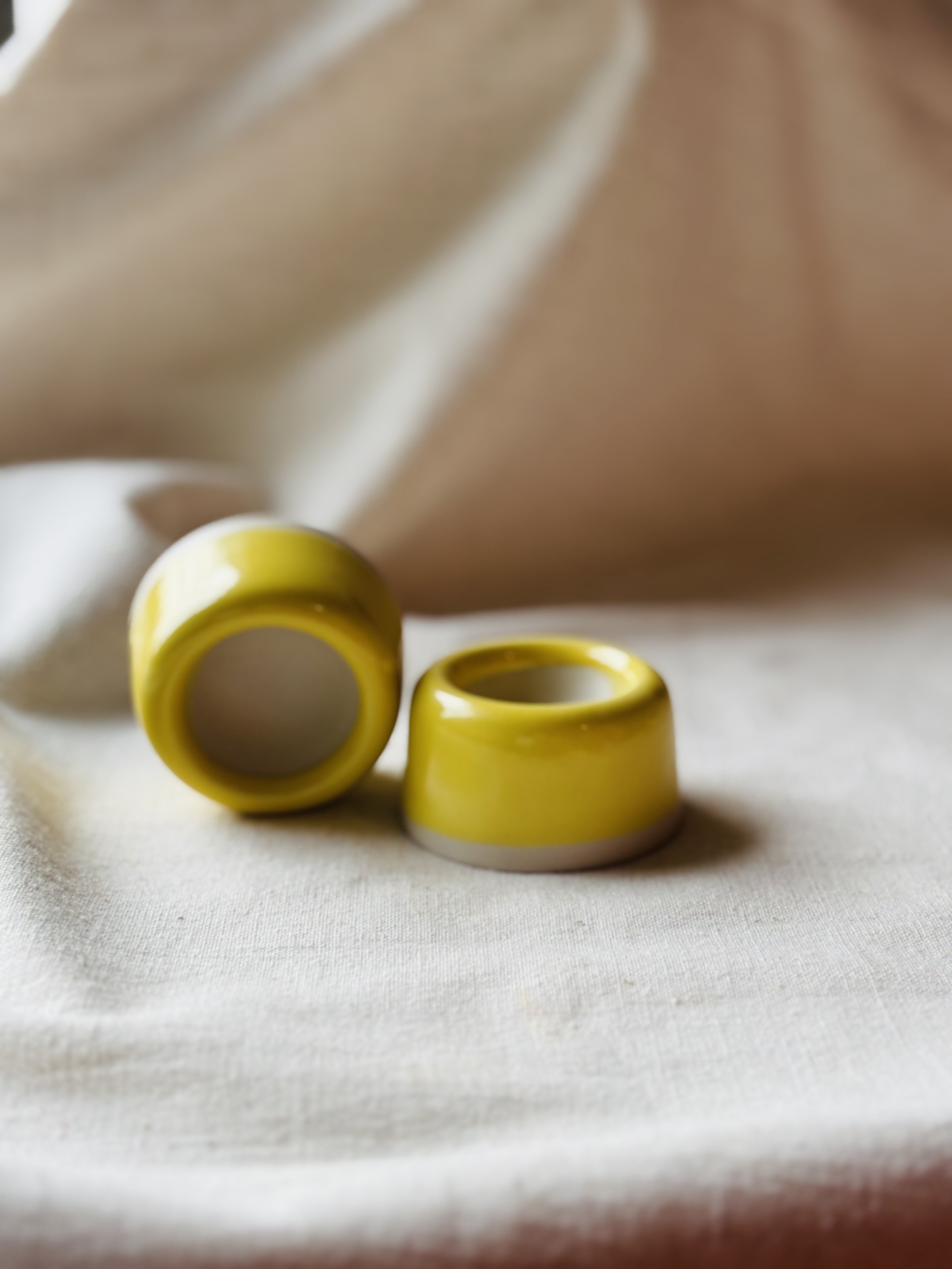 Each egg cup is hand-casted in stoneware, giving it a weighty, tactile feel and a glaze finish that makes every color shine beautifully on your table. Whether you prefer a bright pop of sunshine yellow, a calm pastel tone, or a bold, saturated hue, you can create your own playful combination.