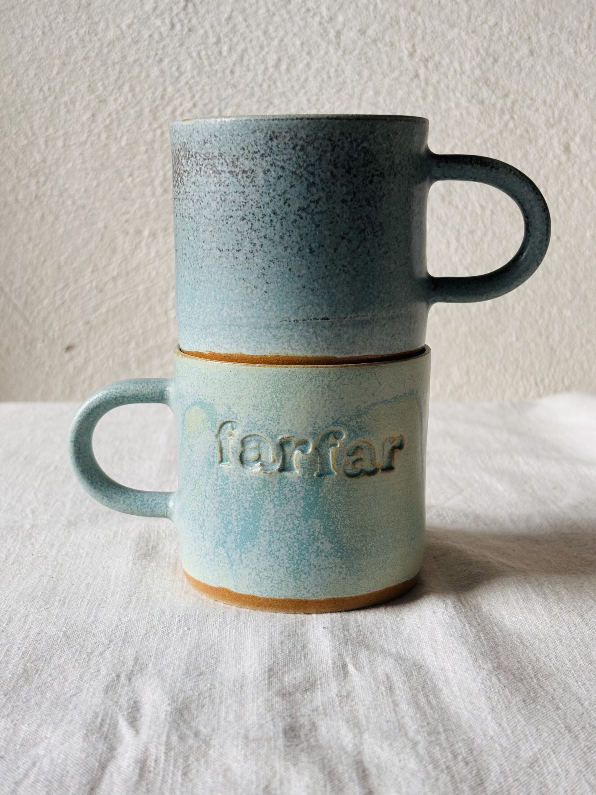 Each Farfar Cup is individually hand-thrown in stoneware and created as a warm tribute to someone special. Designed with a classic handle and stamped with “farfar” on the outside, it’s both personal and practical—perfect for quiet moments and daily rituals.