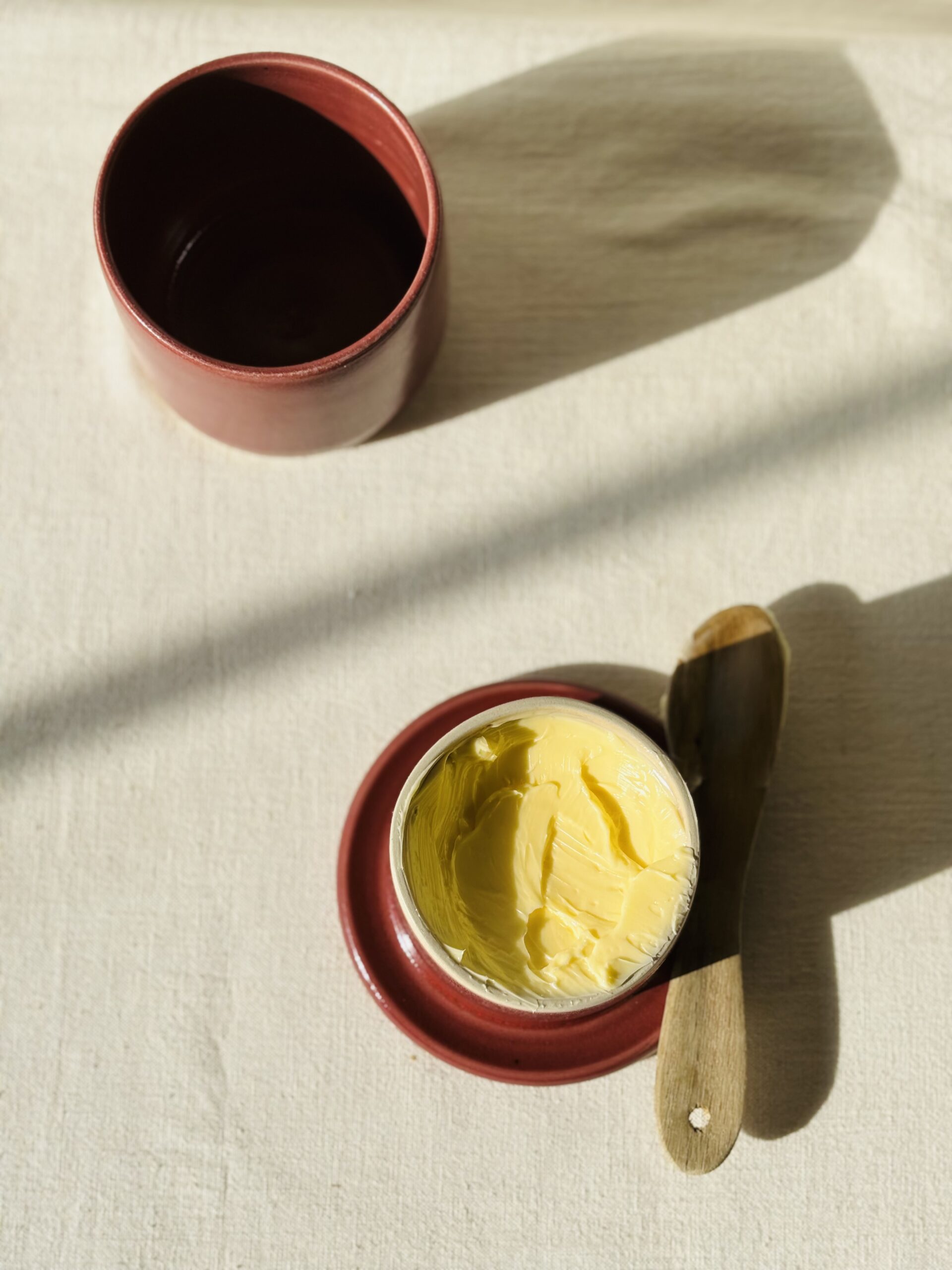 Each Smørklokke is individually hand-thrown in stoneware, thoughtfully crafted to keep your butter fresh, soft, and spreadable while adding a touch of beauty to your table. Its classic form and functional design make it perfect for everyday use in the kitchen.