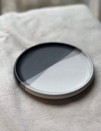 Color: Black and white glazes flowing into each other with a gentle diagonal shiftโminimalist, calm and quietly dramatic.