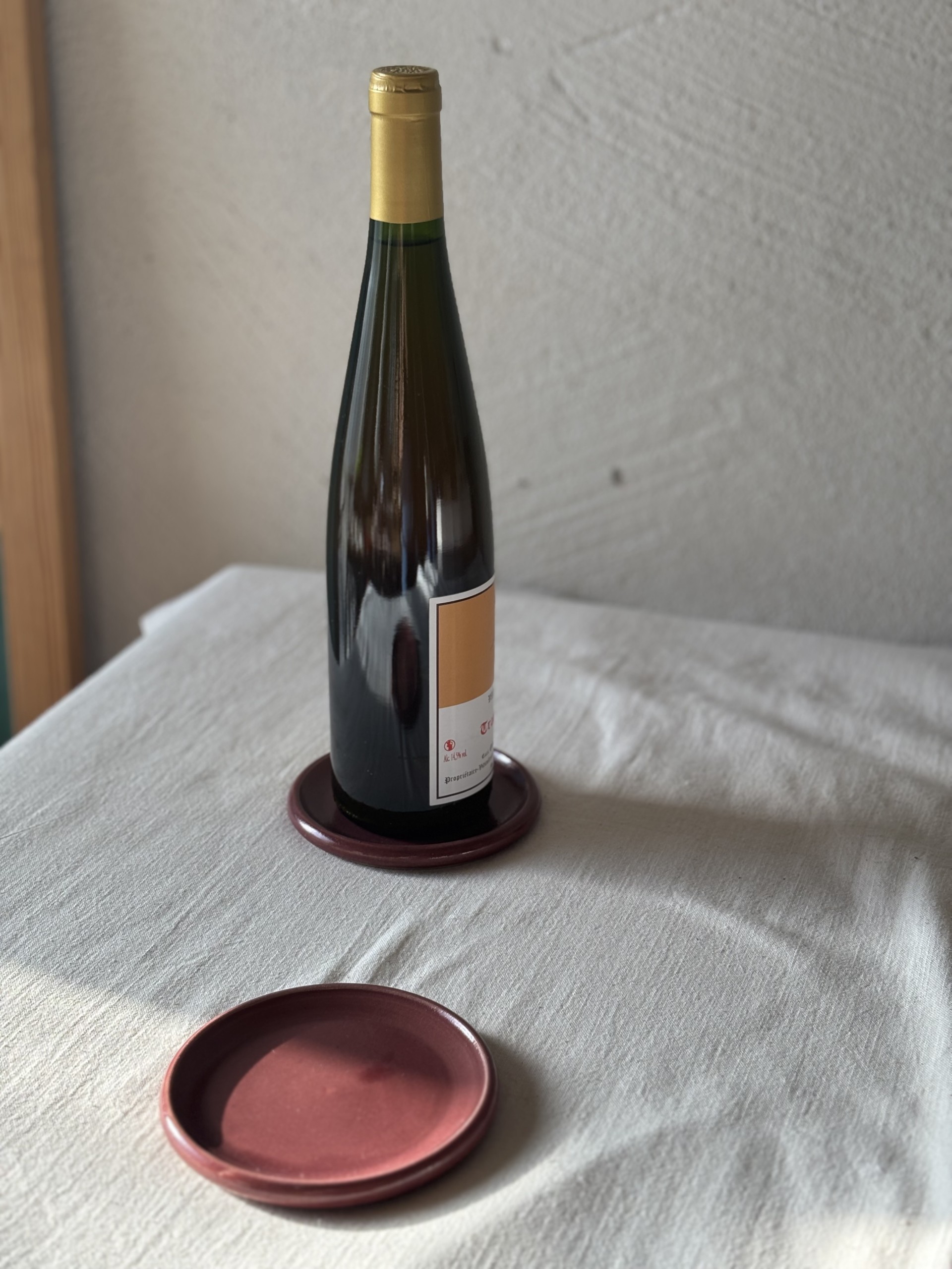 Each Wine Bottle Coaster is individually hand-thrown in stoneware, designed not just for beauty but also for function. Its gently curved form cradles the base of your wine bottle, catching drips before they reach your tabletop, keeping your surfaces clean and protected in style.