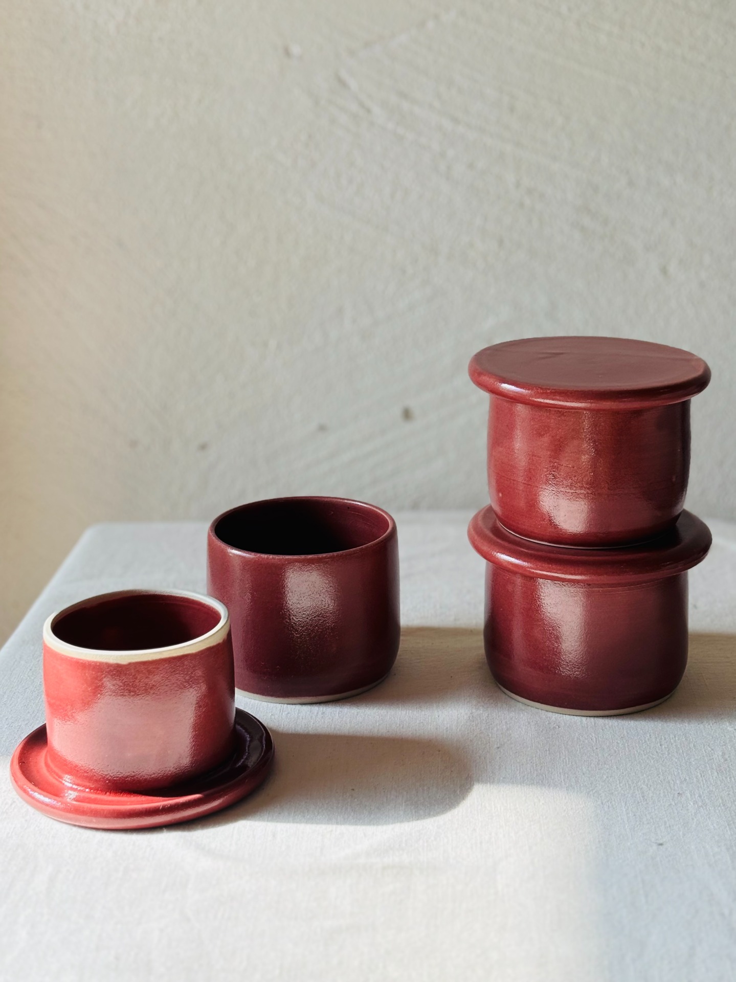Glaseret i en blank rødlig glasur jeg kalder Cranberry.