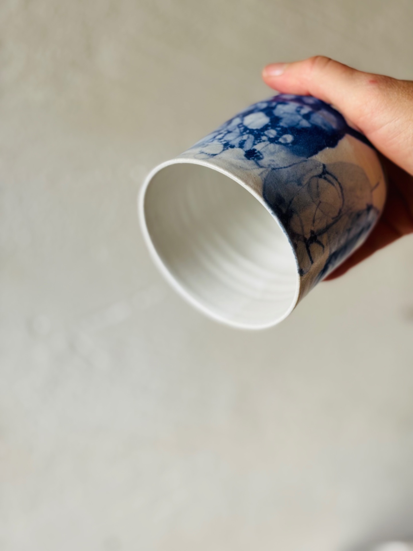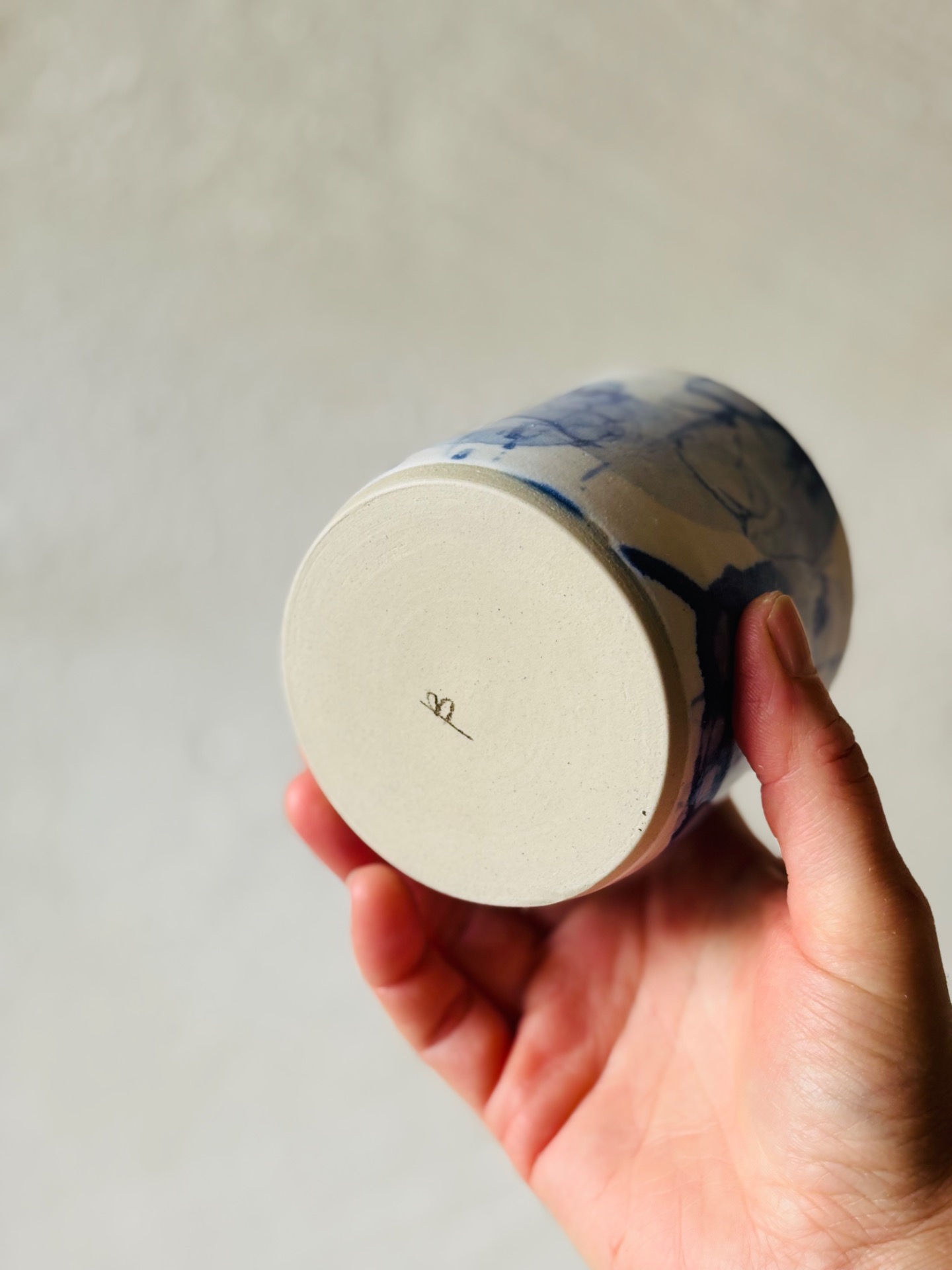 Da hver kop er håndlavet med masser af kærlighed og omhyggelighed varierer de i både farve (og boblerne) og form fra dem på billederne. Hver kop er unik.